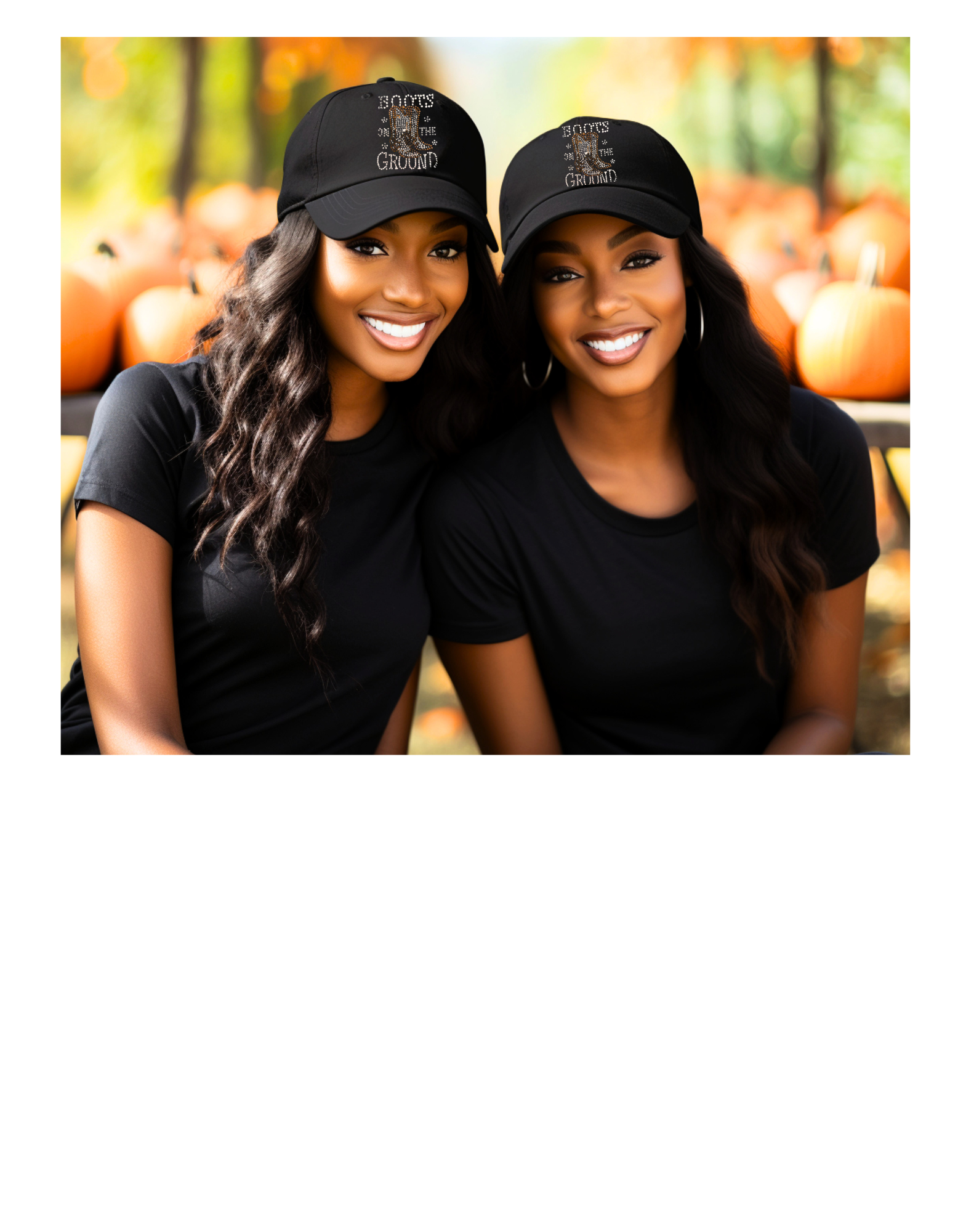 Step out with purpose in this statement making women's baseball cap. Crafted from 100% quality cotton for a comfy, durable fit. Featuring the empowering phrase, "Boots on the Ground" rhinestones across the front. This cap is perfect for making moves-and statements.