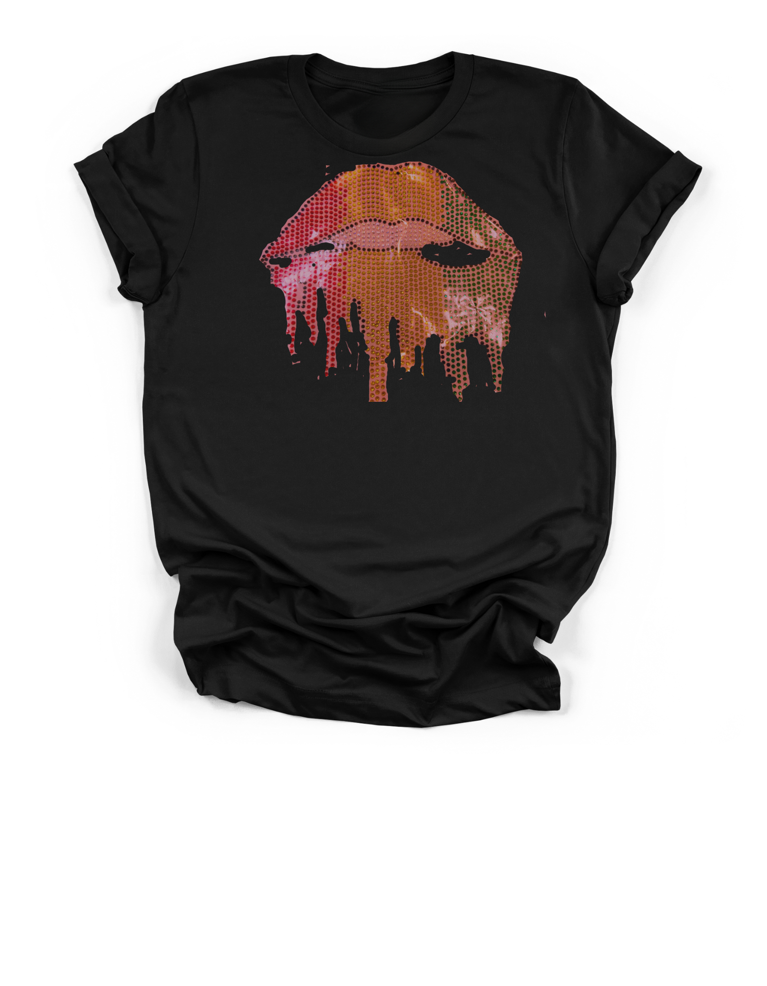 Turn heads and speak volumes with this edgy women's Tee, featuring a bold, colorful lips graphic with a fierce dripping effect. Made from 100% premium cotton. Equal parts art and attitude, it's designed to make a statement without saying a word.